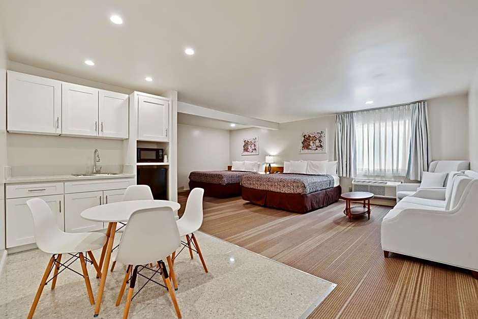 The spacious family room offers air conditioning, a carpeted floor, as well as a private bathroom featuring a bath and a shower. The unit offers 2 beds.